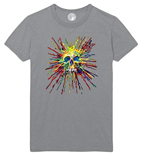 Splatter Skull Neon Dripping Colors Printed T-Shirt - Athletic-Gray - 5XLT