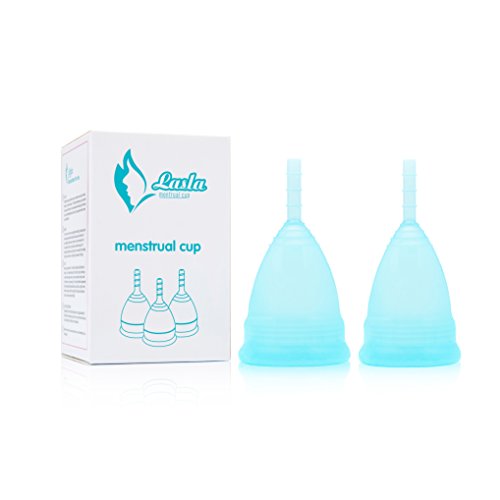 Lasla Menstrual Cups (2-Pack) with Bonus Bag| Stuffiness, Healthy Risk, Leak & Sensation Free Guaranteed | 100% Hypoallergenic Silicone | Optimal Alternative to Pads and Tampons, Small (20ml) & Large