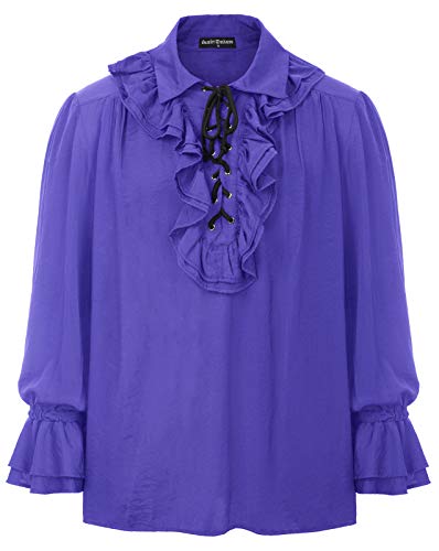 SCARLET DARKNESS Men Scottish Jacobite Ghillie Kilt Shirt Pirate Renaissance Tee Blue L