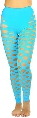 ToBeInStyle Women's Fishnet Slashed Leggings w/Footless Design (Turquoise)