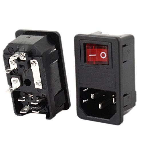 uxcell 10A 250VAC Rocker Switch Fuse Holder 3 Terminals IEC320 C14 Inlet Male Power 2pcs