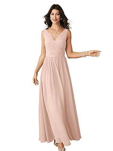 Alicepub V-Neck Pearl Pink Blush Bridesmaid Dresses for Women Chiffon Long Formal Dress for Wedding Party Evening Sleeveless, US14