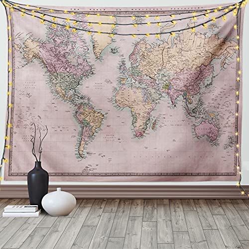 Ambesonne World Map Tapestry, Original Old Hand Colored Map of The World Anthique Chart for Old Emperors Print, Wide Wall Hanging for Bedroom Living Room Dorm, 60" X 40", Pale Yellow