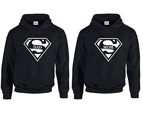 Couple Matching Outfit Super Dad & Super Mom Hoodie Set for Men and Women 1(Black-Black,Men-L/Women-XL)