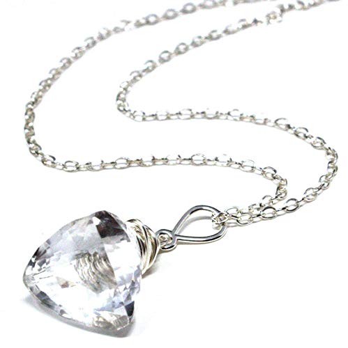 Crystal Quartz Necklace Sterling Silver Trilliant Clear Briolette Pyramid 18 Inches