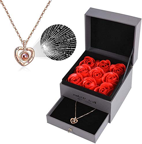 Eternal Preserved Rose, Birthday Gifts for Women| Girlfriend | Mom with I Love You Gold Plated Necklace 100 Languages. Best Women Gifts Set for Mother's Day, Valentines Day, Anniversary Romantic Gift