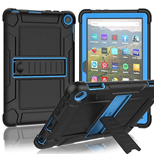 MENZO All-New Fire HD 8 2020 Case, Fire HD 8 Plus Tablet Case, Slim Shockproof Rugged High Impact Protective Case with Kickstand for Fire HD 8 Tablet (10th Generation, 2020 Release) - Black and Blue