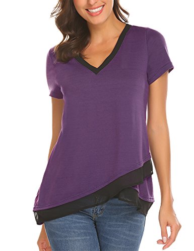Mofavor Women's V Neck Loose Tee Shirt Short Sleeve Casual Flowy Top Blouse